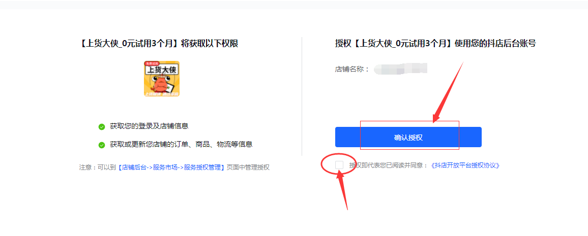 3.在跳出来的网页中,登录抖店店铺并授权,如下图: