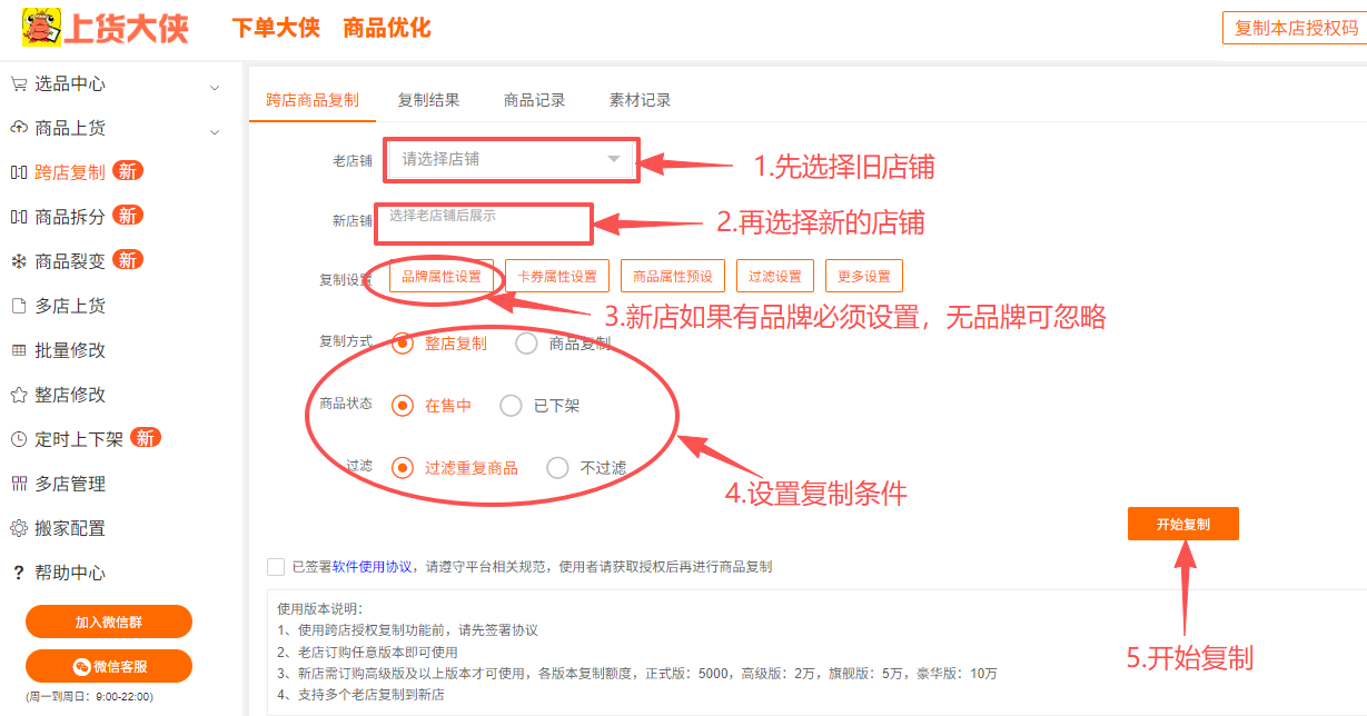 1、新店商品有品牌的请注意,迁移店铺前一定要先设置好品牌,步骤如下: