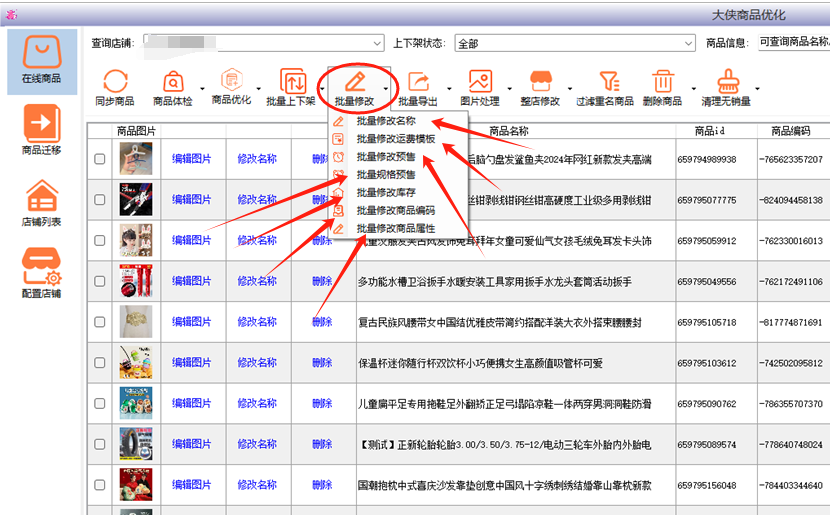 1.打开大侠商品优化,点击“在线商品”,如图所示: