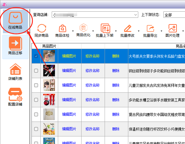 1.打开大侠商品优化,点击“在线商品”,如图所示: