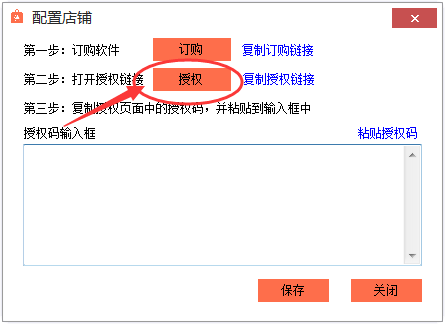 回到下单大侠软件,将我们复制的授权码粘贴到文本框中,点击保存就成功配置好店铺了,如下图: